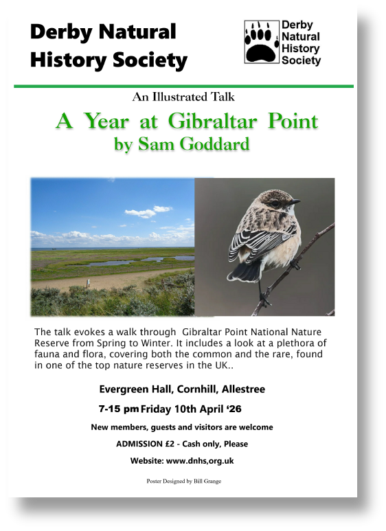 Back to All Events Derby Natural History Society Friday 10 April 2026 19:15 21:15 Evergreen Club Cornhill Derby, England, DE22 United Kingdom (map) Google Calendar ICS