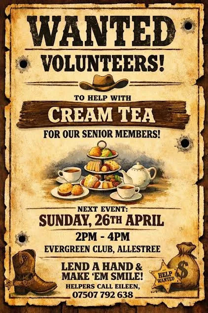 Volunteers Needed! 2 Apr Written By Sue Bampton Can you help with the cream tea afternoon at the AGM? Sue Bampton