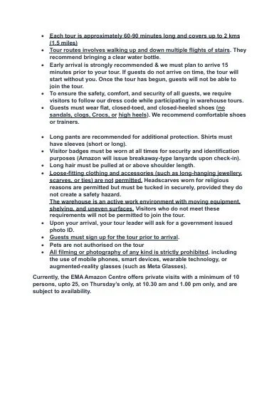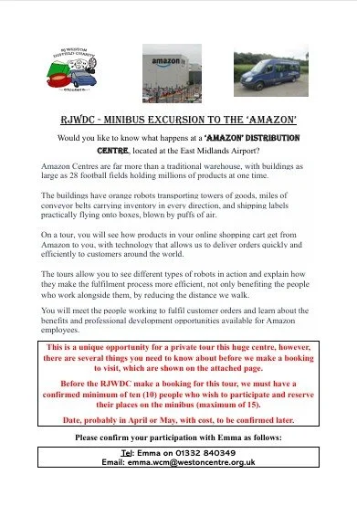 They are currently planning a trip to Amazon Distribution Centre , please see the attached poster and if you are interested contact Emma directly , please read the second page which describes what the tour involves.